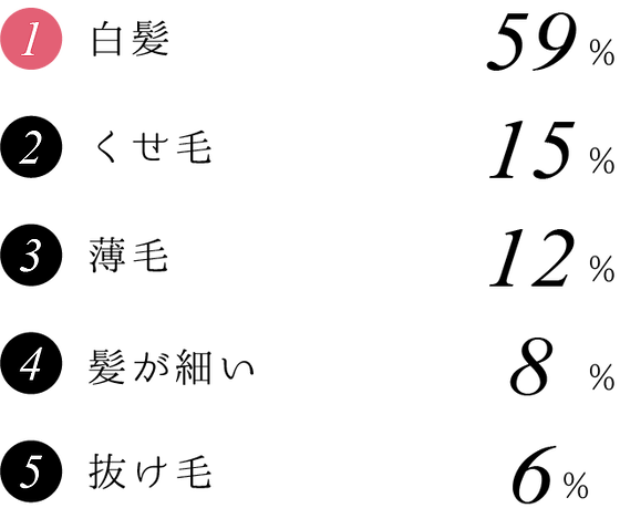 白髪が目立つ、うねりが気になる、ハリ・コシがなくなってきたそんな問題はありませんか?