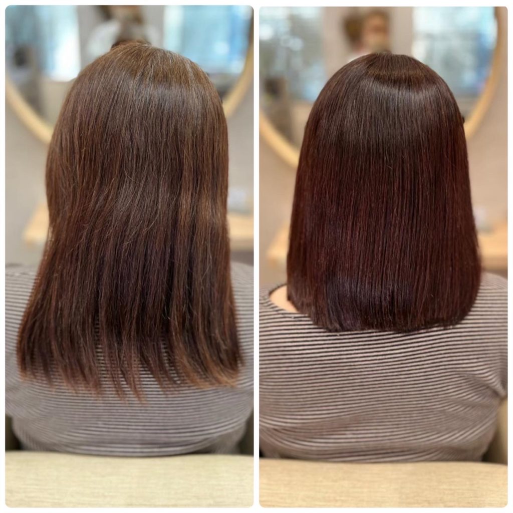 アフターは、根元にハリコシがでてうねりが無くなり、まとまりと艶がある髪の毛になりとても喜んでいただきました😆✨✨